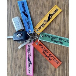 Porte-clés brodés recto/ verso : Guyane Amazonie + coordonnées GPS